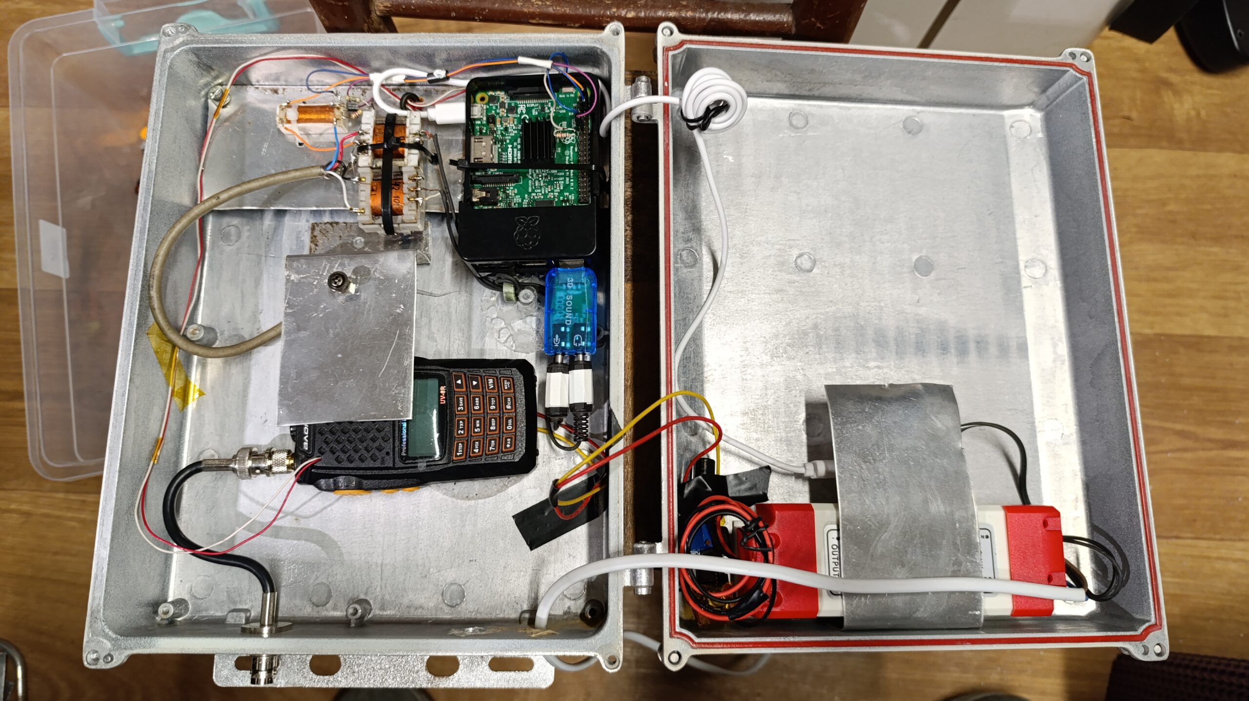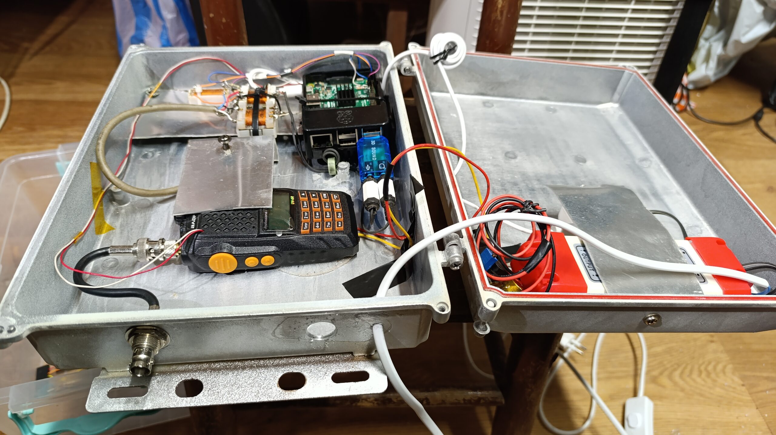На доброволни начала започнахме и този проект, все пак това са любителски изпълнения. За съжаление използването на портативните китайски радиостанции не е трайно решение, те нямат филтри на входа на антената и лесно могат да бъдат претоварени.