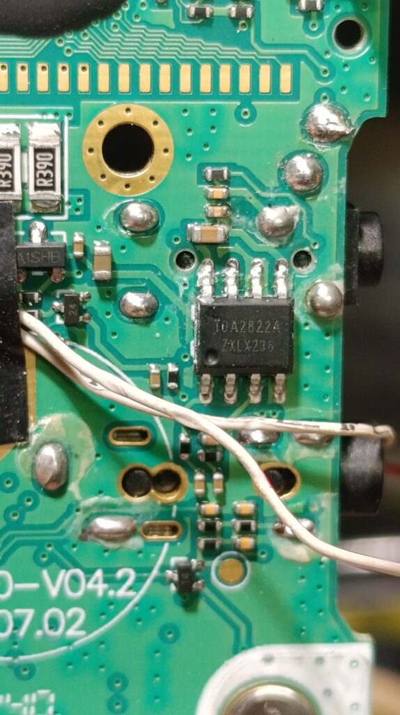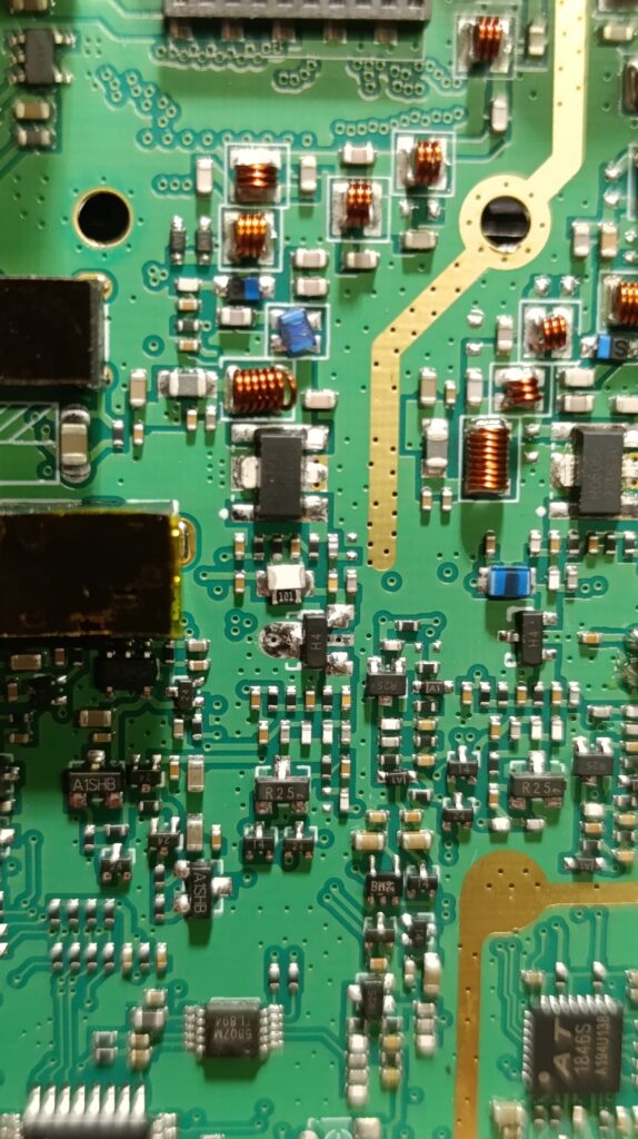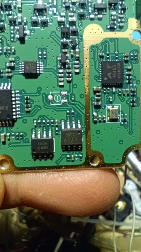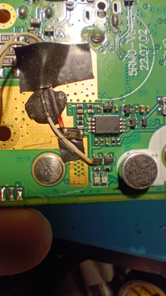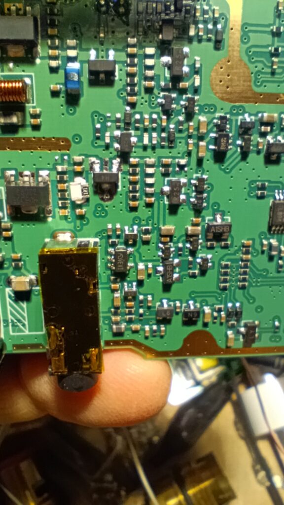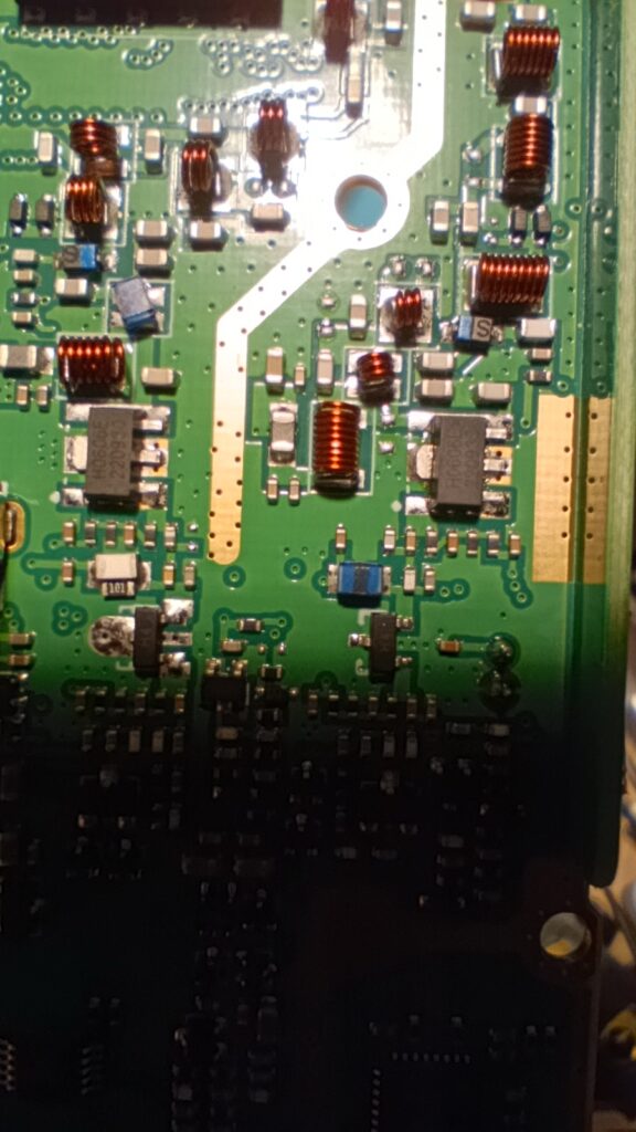 Бауфенга беше спрял да предава затова му направих „дисекция“, двата банда са разделени с ЛЦ филтри и са с идентични крайни транзистори, за да го използваме за ехолинка му направих извод от RX индикаторния светодиод подпрян с един резистор спрямо захранването. Така всъщност колектора на транзистора освен светодиода за индикация ми ъправляваше и оптрона който бях закачил на малинката и така тя детектваше задействано приемане.
