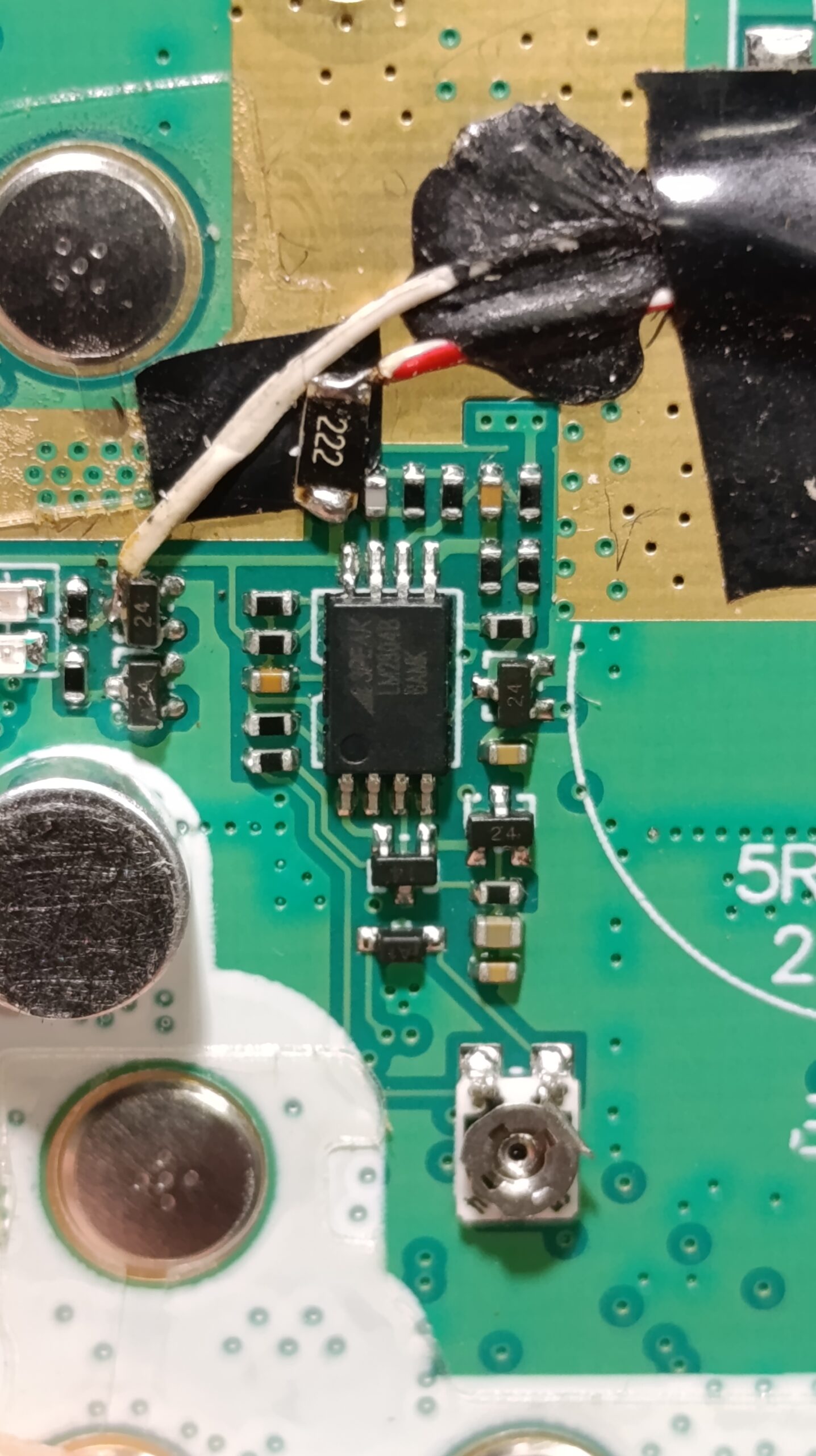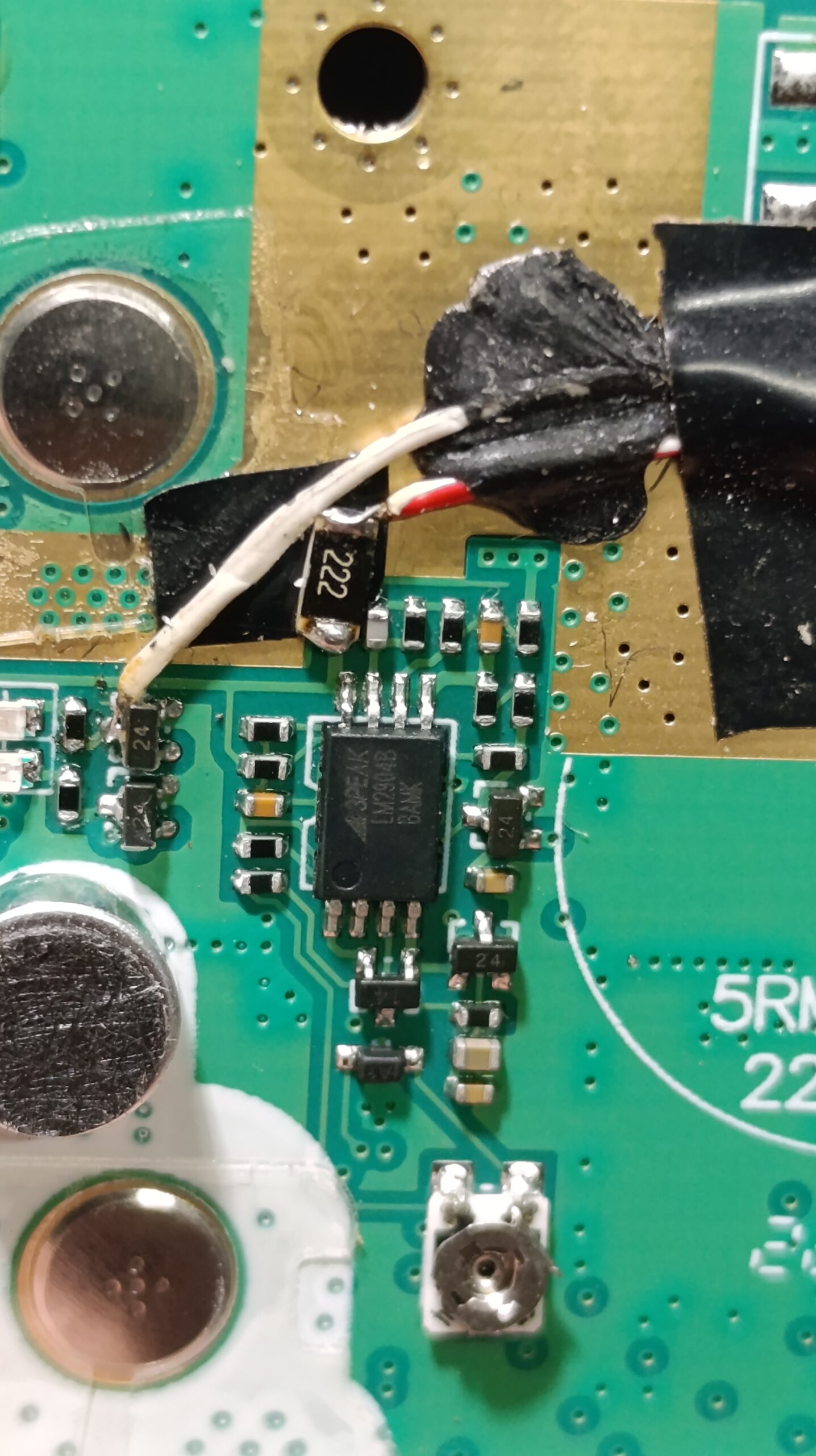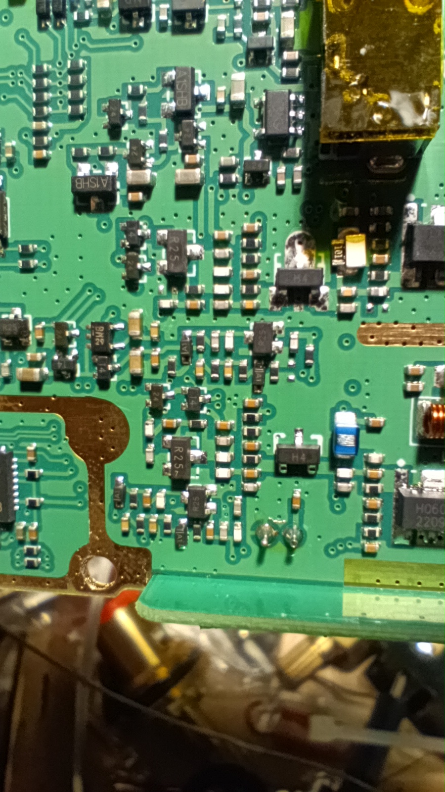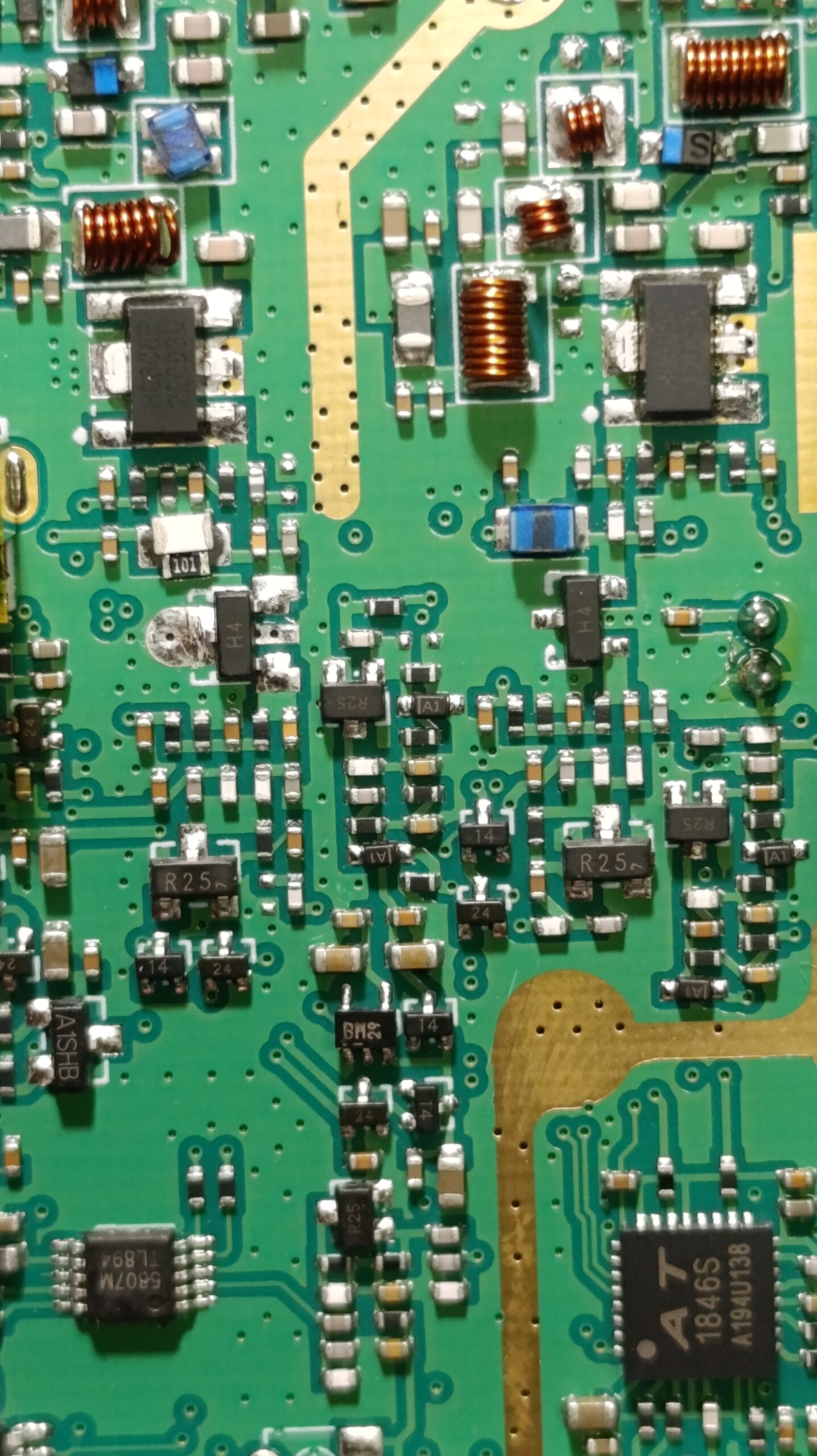 Бауфенга беше спрял да предава затова му направих „дисекция“, двата банда са разделени с ЛЦ филтри и са с идентични крайни транзистори, за да го използваме за ехолинка му направих извод от RX индикаторния светодиод подпрян с един резистор спрямо захранването. Така всъщност колектора на транзистора освен светодиода за индикация ми ъправляваше и оптрона който бях закачил на малинката и така тя детектваше задействано приемане.